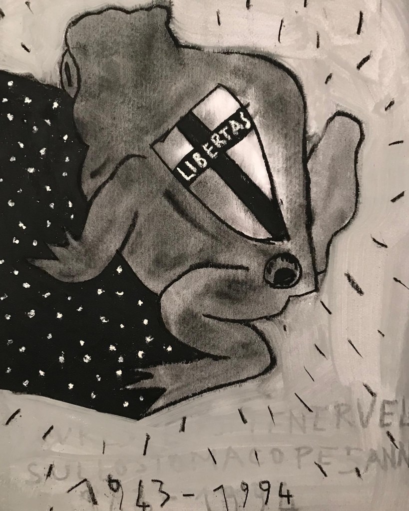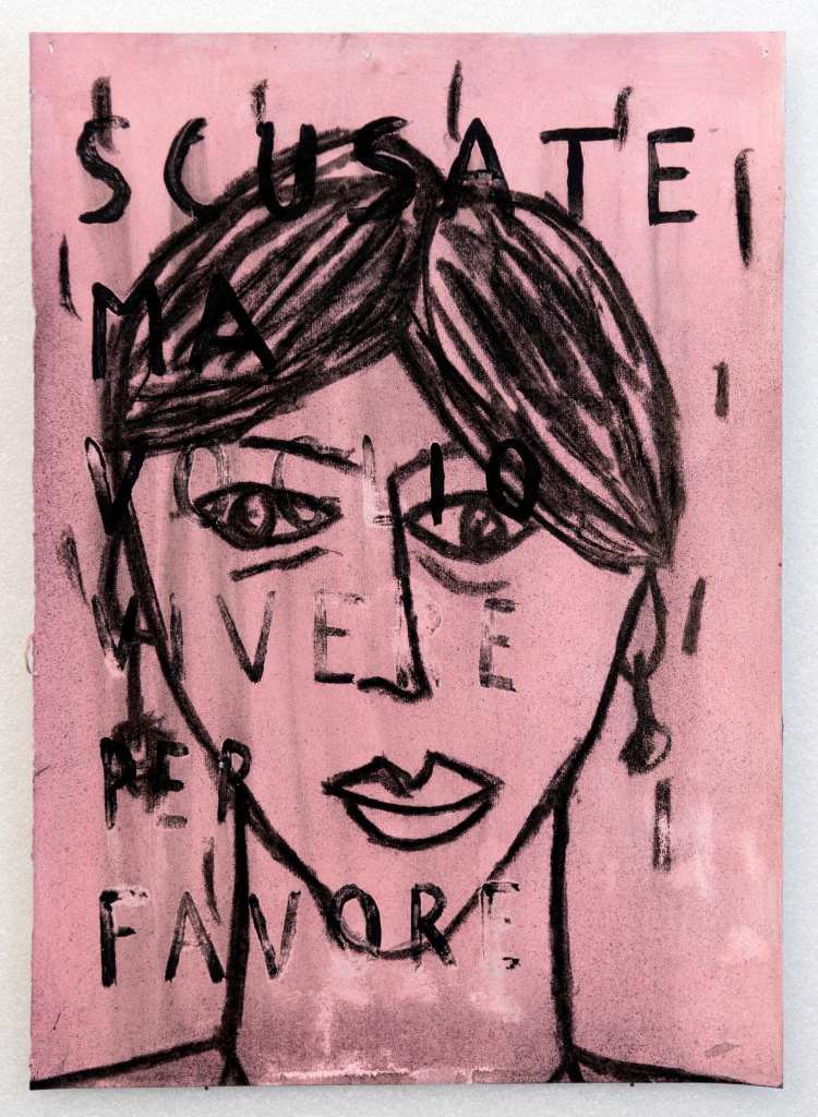 Scusate ma voglio vivere per favore, 2019 pittura, carbone su carta – cm. 50×35