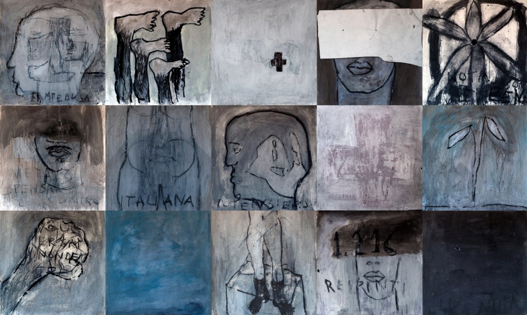 Lampedusa, 2009 tempera su carta, 15 pezzi di cm. 40×40 copia