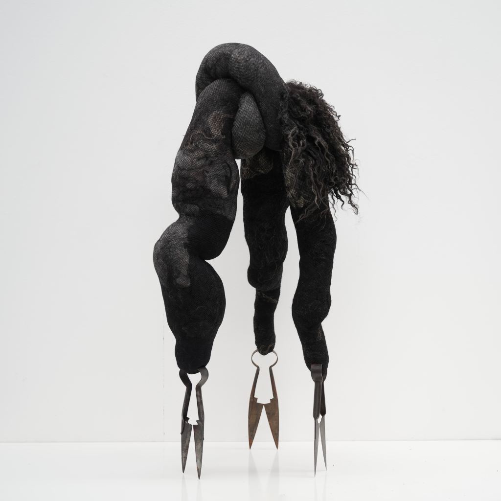 N.T.: Ho iniziato a usare colori scuri attraverso il disegno con il carbone, il carbone compresso e i bastoncini d’olio neri. Poi ho portato i miei disegni dal foglio alla tridimensionalità. Uso materiali nel loro colore naturale, ad esempio i crini di cavallo che utilizzo sono naturalmente scuri. La mia pratica esplora la malinconia e lo spazio liminale tra la vita e la morte. I colori scuri includono marroni, grigi e neri, spesso con macchie di bianco e marroni più chiari. Da quando ho iniziato a usare il vello di lana, ho anche introdotto lane di colori più chiari nella mia pratica. Mi interessa la passione che risiede nelle emozioni come la malinconia.