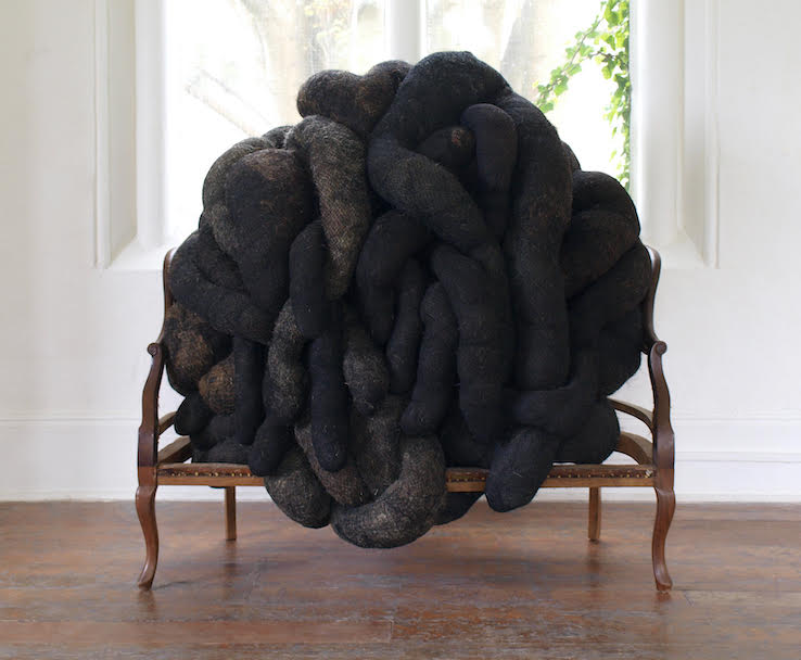 N.T.: I started using dark colours through drawing in charcoal, compressed charcoal and black oil sticks. I then took my drawings off the page into 3D. I use materials in their natural colour for example the horsehair I use is naturally dark. My practice explores melancholy and the liminal space between life and death. Dark colours include browns, greys and blacks, often with flecks of whites and lighter browns. Since I started using wool fleece, I also have introduced lighter coloured wools into my practice. I am interested in the passions within emotions such as melancholy.