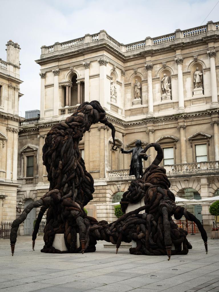 N.T.: Material is a major part of my practice. I use materials from organic ‘dead’ matter such as horsehair – a material used previously for bedding and furniture and, in that regard, alive with history and memory. I explore how these materials give off energy forces, including how “dead” matter can provoke a visceral aversion and attraction, that can provoke new ways of looking. My pieces are part of a vital and thriving microcosmos comprised of human and non-human agents which functions mostly beyond our conscious contemplation. I also combine found objects that hold traces of memory, with the shapes of living forms. I am interested in tendrils and tentacles as ‘feelers’ responding to surfaces as they engulf them, rather than viewing from a distance. My materials are lightweight and can be easily manipulated enabling me to transport them and to work at scale.