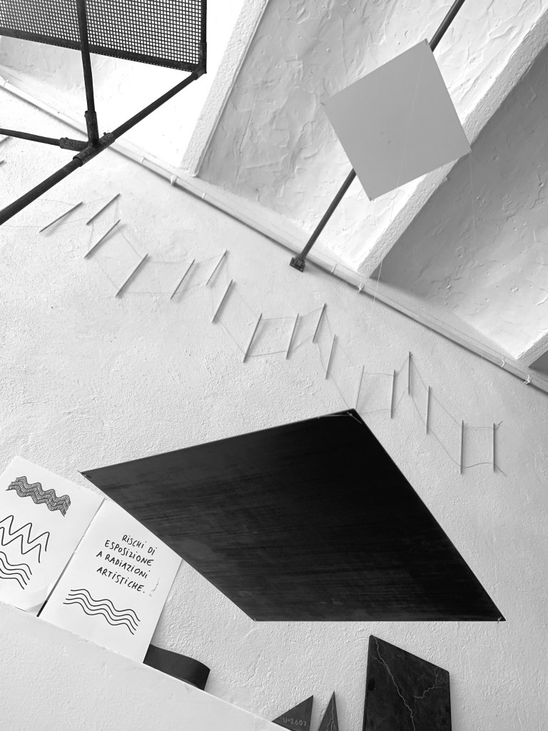 Per quanto riguarda il mio lavoro artistico, vivo questi spazi maggiormente durante la realizzazione delle opere che durante la loro genesi. I momenti di studio veri e propri, durante i quali effettuo ricerche, analizzo le idee, le scarto, leggo, realizzo schizzi o scrivo appunti, nascono a casa mia. Quanto ai lavori di restauro dentro l’atelier sono quelli svolti sulle opere di piccolo formato. Fuori sede effettuo i restauri su grandi formati, le perizie tecniche, i condition report, l’accompagnamento di opere durante i trasporti e a volte l’assistenza e l’installazione.