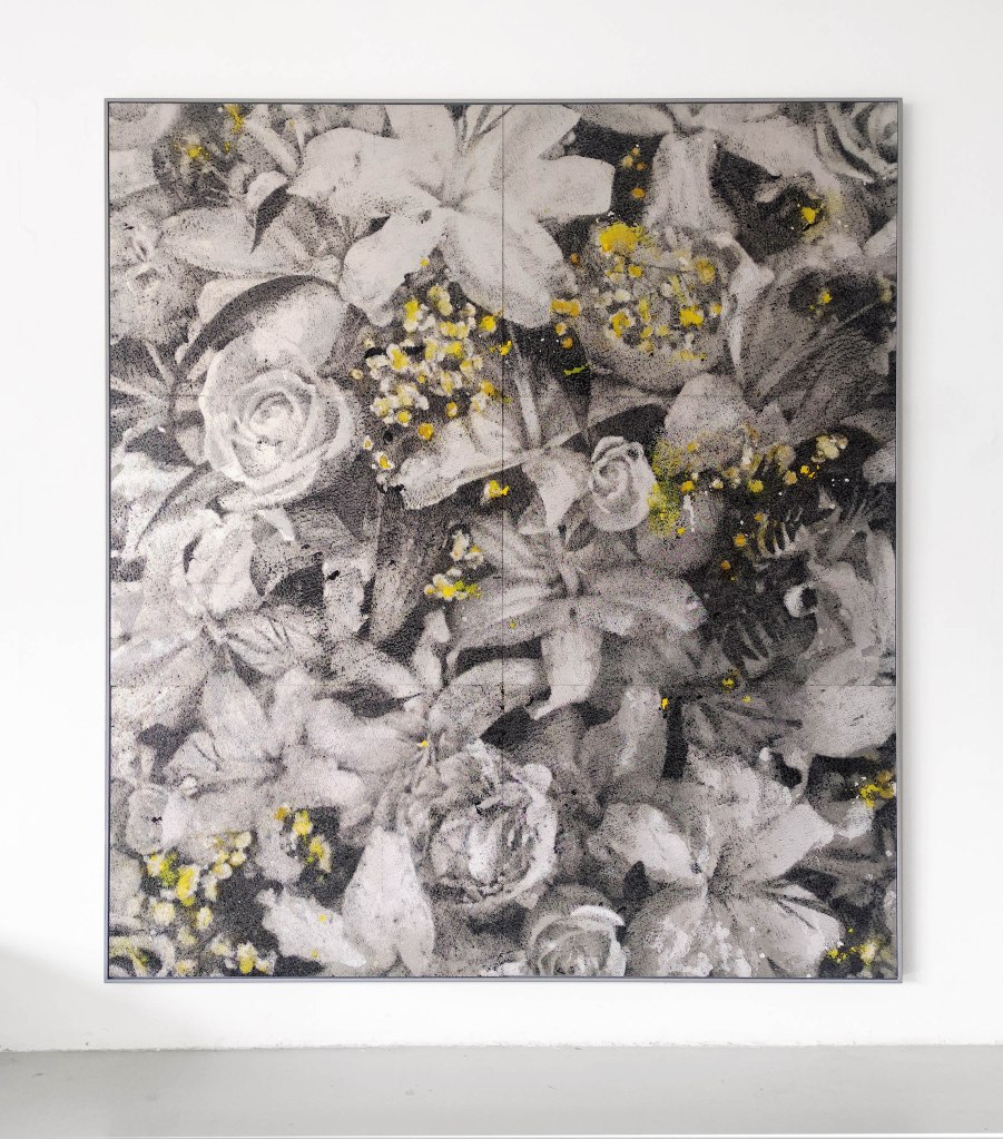 A.M.D.O: The works of recent years are born in direct relation to time. The technique used, constructing the work point by point, requires not only time but vice versa time appears in every point applied on the canvas. A work that contrasts with the rhythm of the world, with the speed of other techniques. If Informal is fast, emotional, gestural painting, my work is currently the opposite: slow, precise, repetitive.