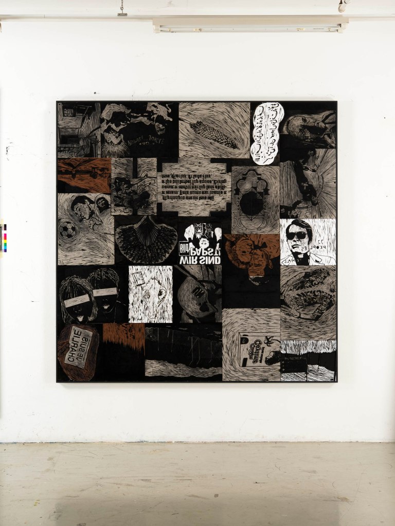 Linoleumschnitte appliziert auf Holz Incisioni su linoleum, applicati su legno