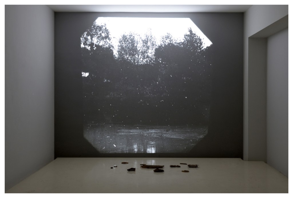 Fiume, 2023. Proiezione analogica ed elementi naturali, intervento in ambiente. Ph Michele Alberto Sereni, Spazio Bianco Pescheria di Pesaro