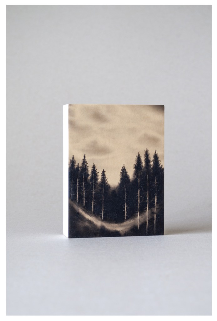 Bosco, 2024. Pastello e olio su carta su legno cm. 9 x 12