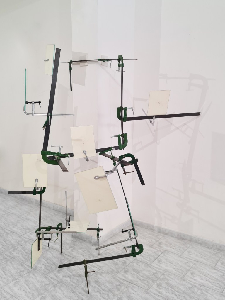 Disegni a grafite su carta Favini, vetro, morsetti in acciaio