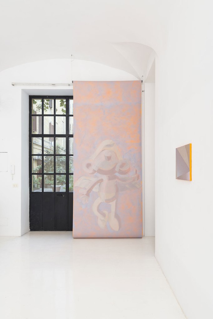 AA: Piuttosto che allo spazio preferisco riferirmi al luogo: il luogo è dove dipingo, come il mio studio, è cosa dipingo, come la parete, è anche dove risiede il quadro appeso. Similmente, piuttosto che al tempo preferisco riferirmi al movimento: il movimento che guida il pennello o quello di un corpo intorno al quadro, o ancora quello verso la concentrazione per fare o verso la contemplazione per osservare.