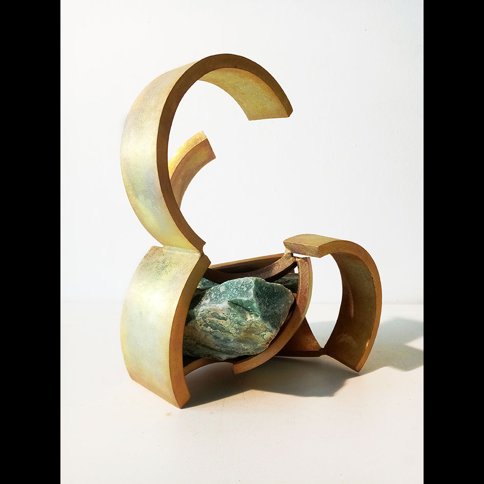 Pd’A: Spesso nelle tue sculture coesistono materiali diversi metallo, creta, pietra…come scegli i materiali con cui lavori ?