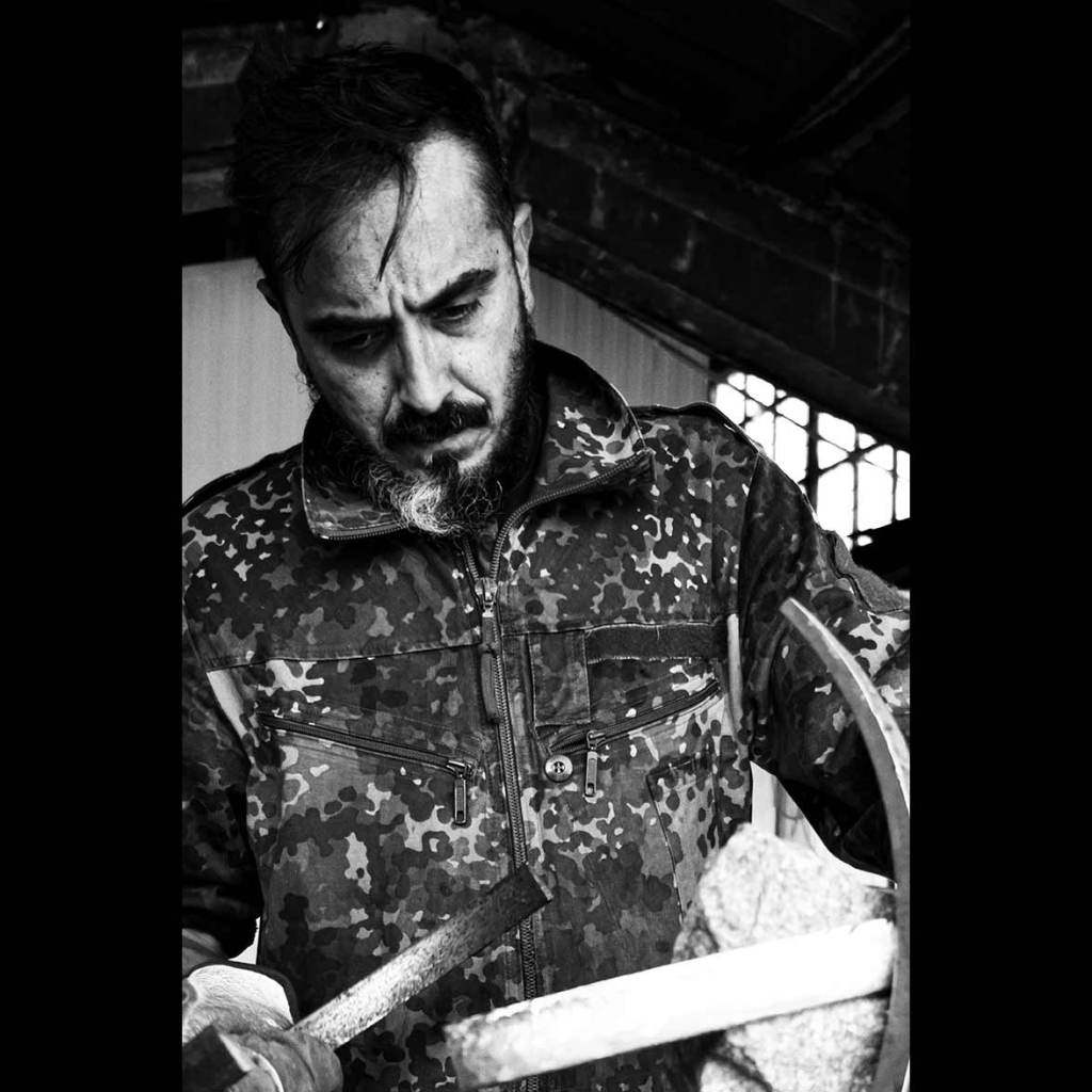 Daniele Nitti Sotres, Italian-Spanish sculptor, was born in Milan in 1977. He graduated with honours in Scenography and Sculpture at the Brera Academy of Fine Arts, where he obtained a further Master’s degree in Landscape Design. During his academic studies, he discovered a strong attraction towards matter and the energy emanating from it, in particular towards metals and stones. This attraction gradually pushed him away from scenographic fiction to establish an increasingly intimate and close dialogue with the primary energy of sculpture-making and materials of natural origin. From his beginnings to the present day, he has been investigating the different possibilities of sculptural intervention and possible relationships with space, from the intimate, small-scale space where he can dialogue and question materials, to the development of temporary environmental installations and the creation of permanent sculptures on a monumental scale.
