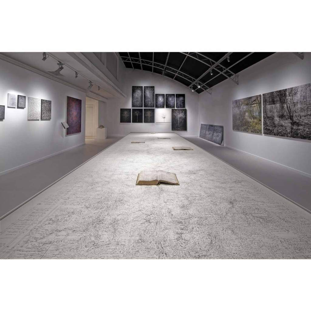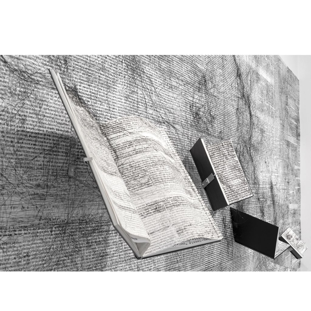 B.F.: Nel corso del tempo il mio lavoro di disegno si è evoluto in una forma di scrittura grafica fluttuante, passando da un supporto all’altro, da una pagina strappata da un libro o da una fotografia di un paesaggio o di una natura morta. Questo viaggio grafico tra i disegni rimane sempre al limite del linguaggio, nonostante la sua costante ricerca di significato. È una forma ascetica di scrittura. Tuttavia, continuo a cercare un modo per colmare questo deficit, imprimendo e dirottando su testi letterari che hanno cambiato il mio modo di vedere le cose.