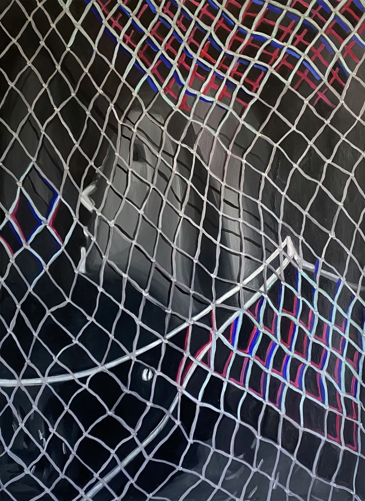 M.R.:Se qualcosa ricorda la geometria, quei rombi che creano la trama delle reti presenti nella mia poetica più recente è perché ad un certo punto è comparso questo elemento