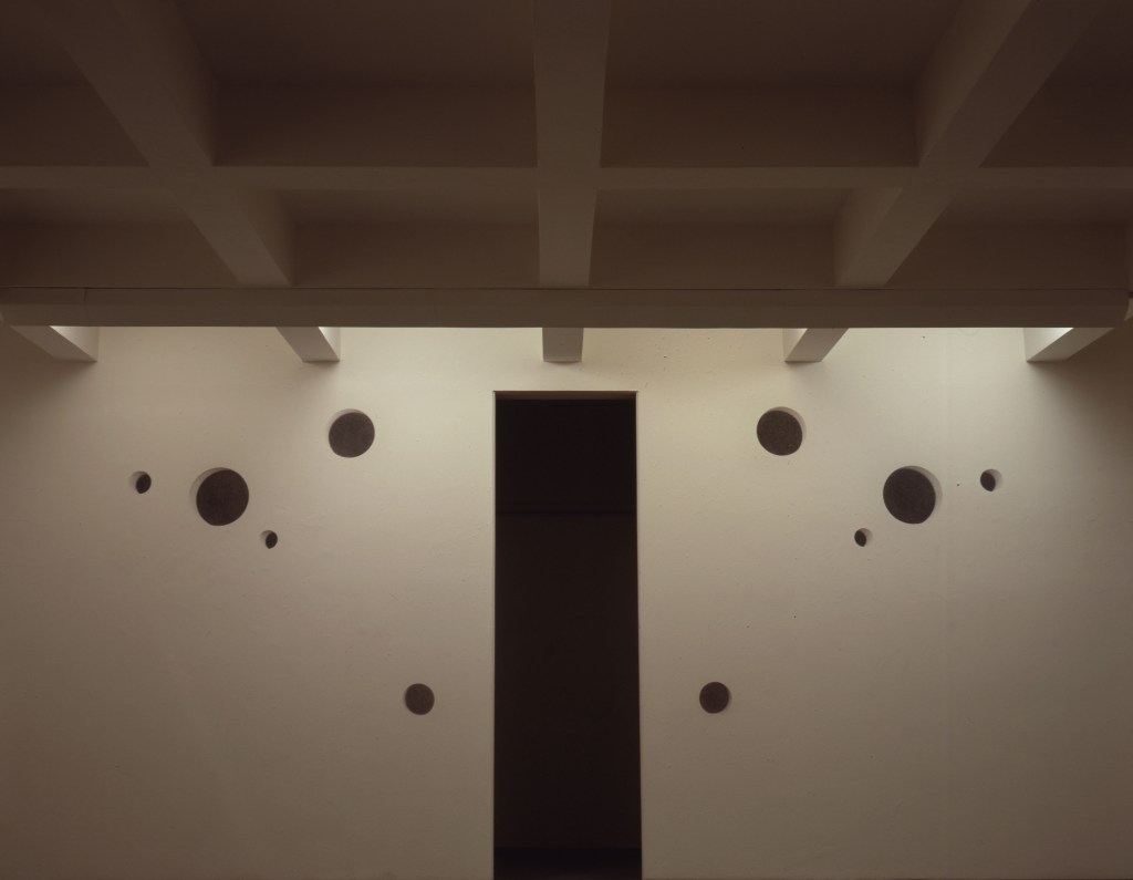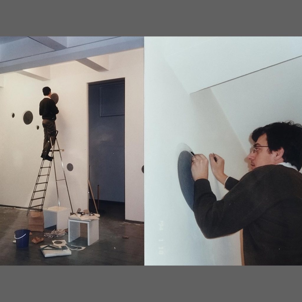 G.S. È molto importante, anzi è obbligatorio. Il bel seminterrato della galleria aveva doppie pareti su due lati, distanti circa un metro l’uno dall’altro, più due aperture verticali al centro, ed è stato proprio questo aspetto a suggerire il lavoro dei finti oculi. Il mio primo lavoro site-specific è nato lì …